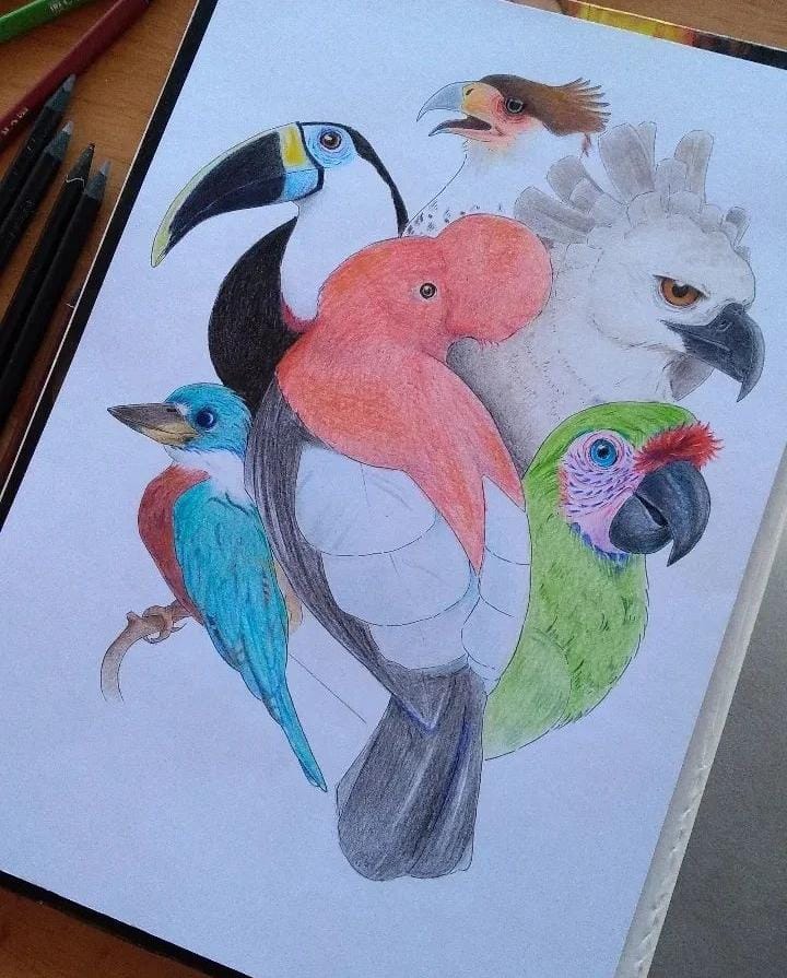 Técnica: Lápices de colores y tinta Material: Hoja A4 (120 gr.) Esta exquisita ilustración naturalista captura la diversidad y belleza de las aves de la región del Pastaza, utilizando la delicada combinación de lápices de colores y tinta. Cada detalle ha sido cuidadosamente plasmado para resaltar las texturas de las plumas, las sutilezas de los tonos y los matices únicos que caracterizan a las especies nativas de esta área amazónica. La técnica de lápiz de colores ofrece una suavidad y profundidad excepcionales, mientras que la tinta resalta las líneas y contornos de manera precisa, añadiendo un contraste que da vida.